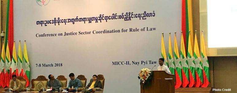 ပထမဆံုးအႀကိမ္ တစ္ႏိုင္ငံလံုးအဆင့္က်င္းပျပဳလုပ္သည့္ “တရားဥပေဒစိုးမိုးေရးအတြက္ တရားမွ်တမႈဆိုင္ရာ ေပါင္းစပ္ညိႇႏႈိင္းေရးညီလာခံ” ကို ၂၀၁၈ ခုႏွစ္၊ မတ္လ (၇) ရက္ႏွင့္ (၈) ရက္ေန႔တြင္ ေနျပည္ေတာ္ရွိ ျမန္မာအျပည္ျပည္ဆိုင္ရာကြန္ဗန္းရွင္းဗဟိုဌာန -၂ တြင္ က်င္းျပဳလုပ္ခဲ့သည္။ ထိုညီလာခံတြင္ ႏိုင္ငံေတာ္၏ အတုိင္ပင္ခံပုဂၢိဳလ္ ေဒၚေအာင္ဆန္းစုၾကည္မွ အဖြင့္မိန္႔ခြန္းေျပာၾကားခဲ့သည္။ ထို႔ျပင္ “ျမန္မာႏိုင္ငံတြင္ တရားမွ်တမႈႏွင့္ တရားဥပေဒစိုးမိုးေရး အေျခအေနဆိုင္ရာသုေတသန” ေခါင္းစဥ္ေအာက္တြင္ ပညာအလင္းပြင့္ျမန္မာသုေတသနေဖာင္ေဒးရွင္း၏ အမႈေဆာင္အရာရွိခ်ဳပ္ျဖစ္သူ ေဒၚျမတ္သက္သစၥာမွ “လူ႔အသိုက္အဝန္းတြင္ ေဒသႏၲရဆိုင္ရာ တရားမွ်တမႈ၏ ပကတိအေျခအေန” ေခါင္းစဥ္ျဖင့္ ေဆြးေႏြးခဲ့သည္။